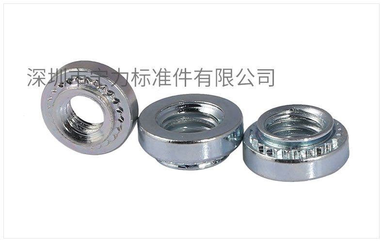 1、壓鉚螺母又叫鉚螺母,自扣緊螺母,是應(yīng)用于薄板或鈑金上的一種螺母,外形呈圓形,一端帶有壓花齒及導(dǎo)向槽。其原理是通過壓花齒壓入鈑金的預(yù)置孔位,一般而言預(yù)置孔的孔徑略小于壓鉚螺母的壓花齒,通過壓力使壓鉚螺母的花齒擠入板內(nèi)使預(yù)置孔的的周邊產(chǎn)生塑性變形,變形物被擠入導(dǎo)向槽,從而產(chǎn)生鎖緊的效果。壓鉚螺母一般用于薄壁板,是通過壓力嵌入的,接觸面是接觸應(yīng)力,也就是說強度要取決于銜接件和母體,螺母受到的是剪切應(yīng)力,所以假如螺母的強度不行會剪切破壞,而母體的強度不行會塑性壓潰變形失效;